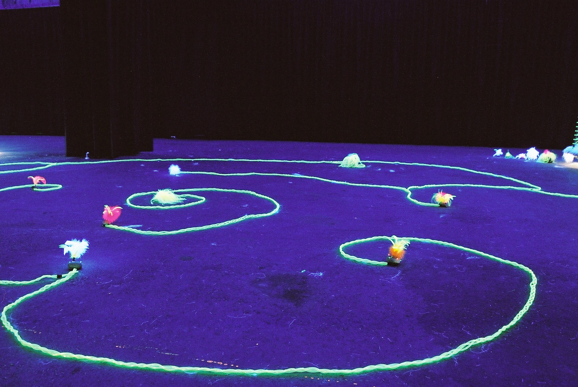 於是我計劃製作6個大型的蛋室,並由UV燈與螢光質材裝扮,下方檯座則鋪上毛毯,並隱藏重低音喇叭及感應器。當觀眾選擇進入自己喜歡的微亮蛋中時,隨即播放舒緩的電子音樂,誘引觀眾進入一種鬆弛狀態,或坐或臥,或輕輕隨性舞動;觀眾與作品的互動如同一種自然靈修的狀況,並經由音樂提供轉化過程,使觀眾彷彿置身一個深沉、柔軟、輕鬆、愉悅、自在的漂浮狀態,經驗美好。