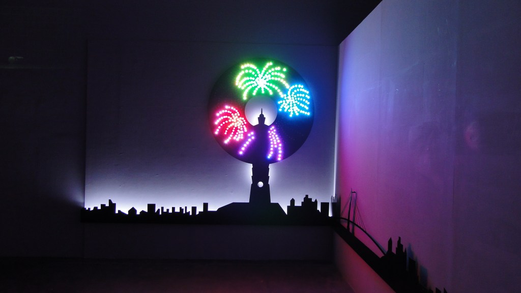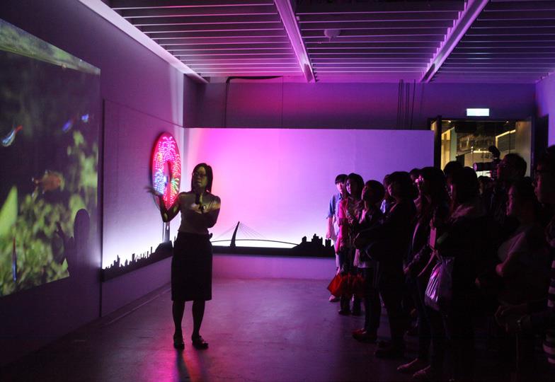 2012年1月,我以在「在幸福的邊陲」為題,在視盟1F藝文空間舉辦錄像投影聲音裝置個展,如同過去一貫的創作經驗,創作者喜歡就同一個主題一作在作,直到感覺飽和,了無新意為止。反覆咀嚼的過程中,會依照同樣主題,運用不同的但為創作者熟悉,也一貫喜歡的媒材,一做再做。曾經發展多年的系列有: 討論螢光色彩與電音聲響的系列,作品包含:「螢光計畫-1」、「螢光計畫-2」、「螢光變奏」、「快樂地」、「快樂漫遊」、「快樂半島」。以家為符號來表現甜膩幸福之極大化後的孤獨感,那種金玉其外、敗絮其中的強烈對比與淒涼,作品包含:「甜蜜家庭生日快樂」、「豪華家庭初體驗」、「那光譜如同小小點」、「我的小小家」、「鏡花緣」以及「在幸福的邊陲」展覽。