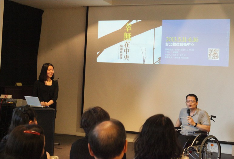 這次個展作品以錄像投影聲音裝置作為強烈的引言。也運用夜間才能展現蠱惑姿態的燈光裝置,希望在此登場的作品,能稍稍討論自我中心與環境他者間又疏又緊,亦遠亦近的糾結感。而展覽名稱「幸無在中央」,「幸無」即是幸好沒有的意思,雖然本初是在不斷謄打「幸福在中央」而錯置成「幸無在中央」,卻更貼近創作的基本想法。「幸無在中央」也希望對價值去中心化進行思考,核心價值的核心不等同個人價值的價值。