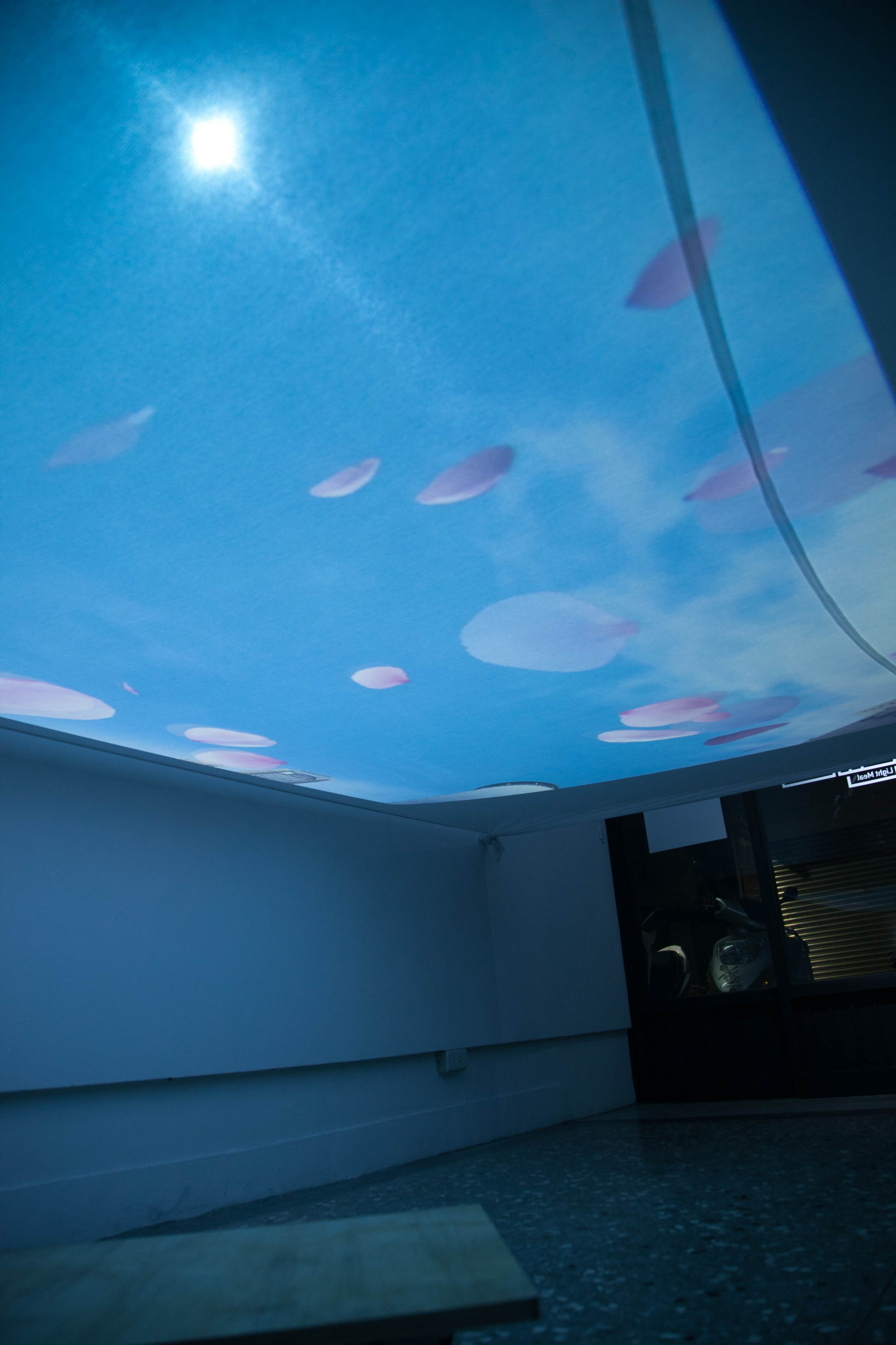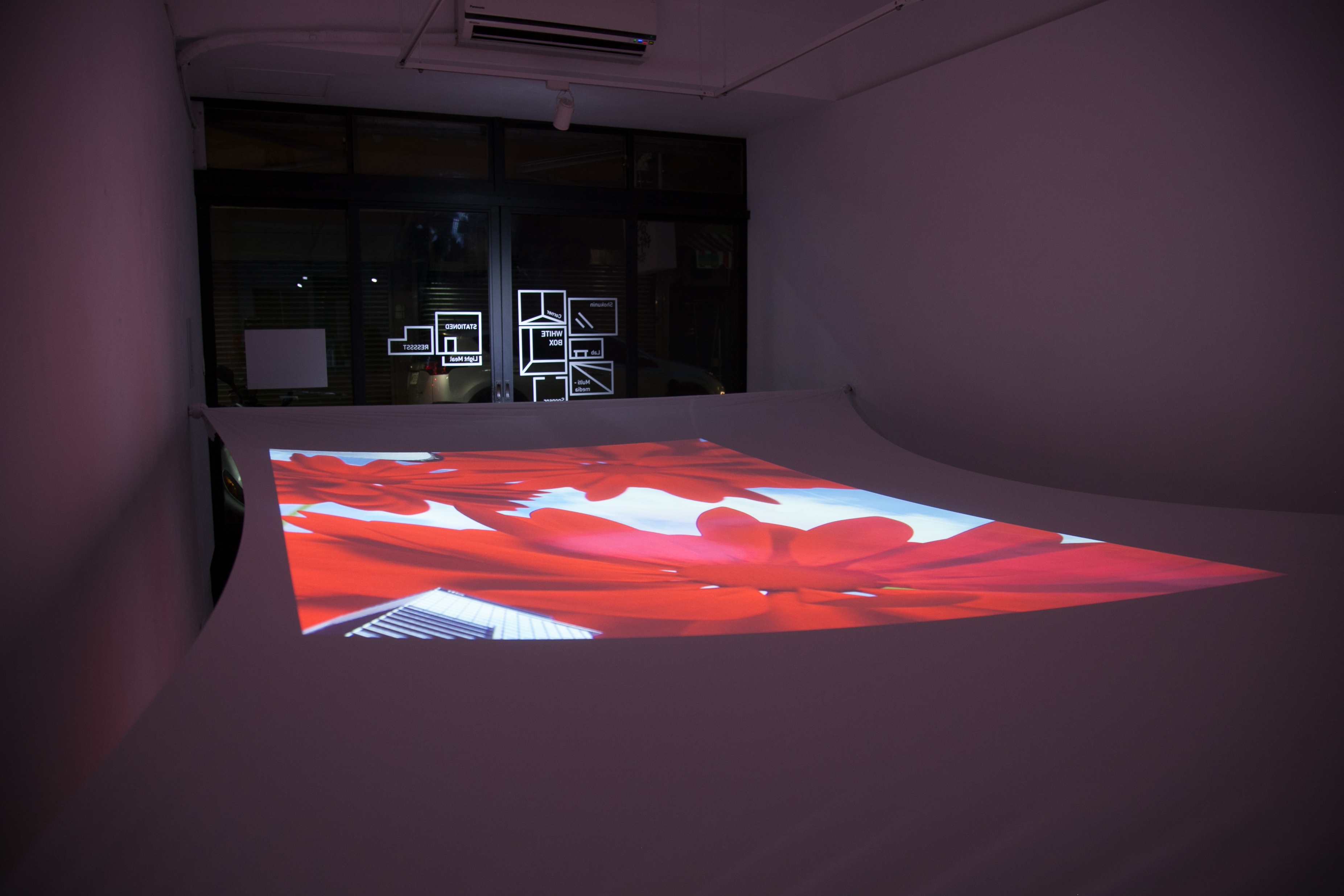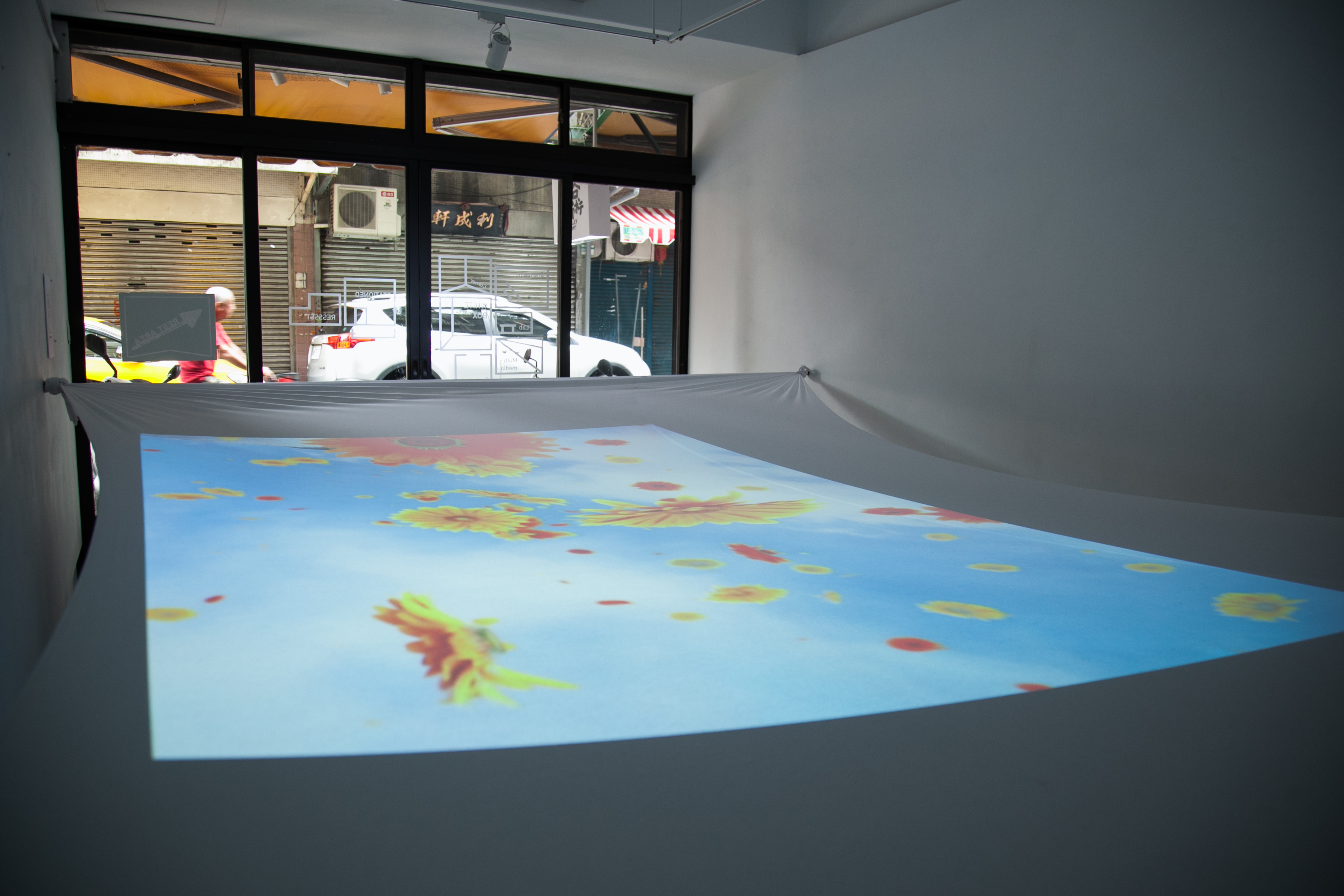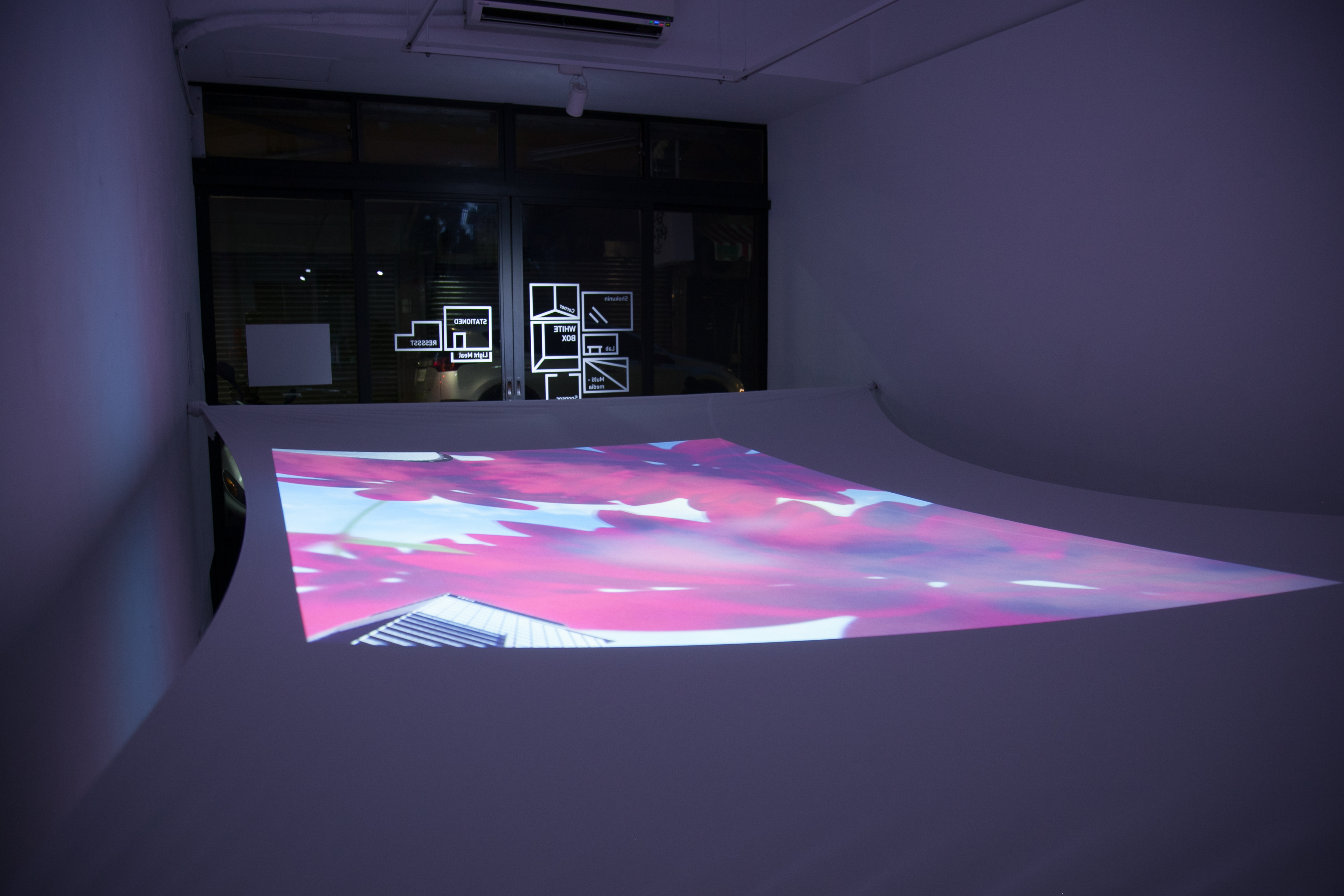 投影裝置、 帶輪滑板 投影材質:背投影/投影萊卡布料環境控制:現場需要設置維護員,避免參與者移動時相撞